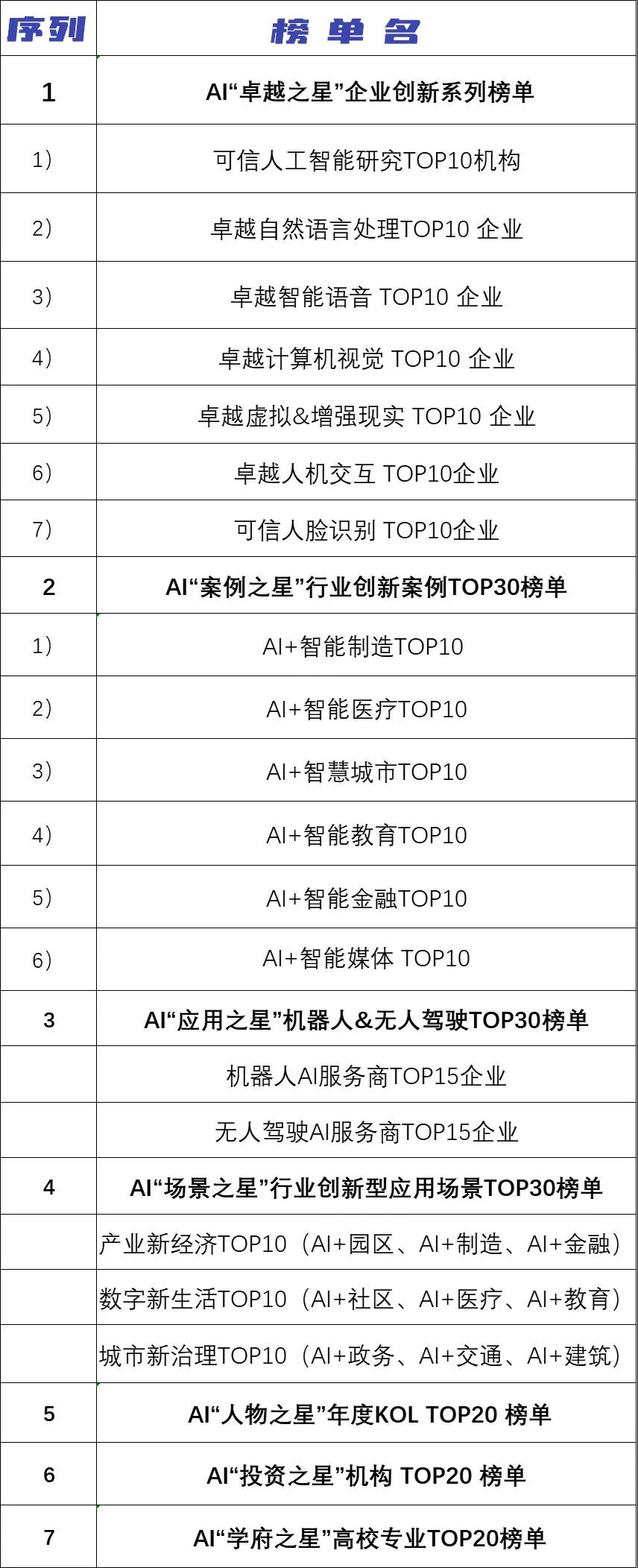 1、AI“卓越之星”企業創新系列榜單