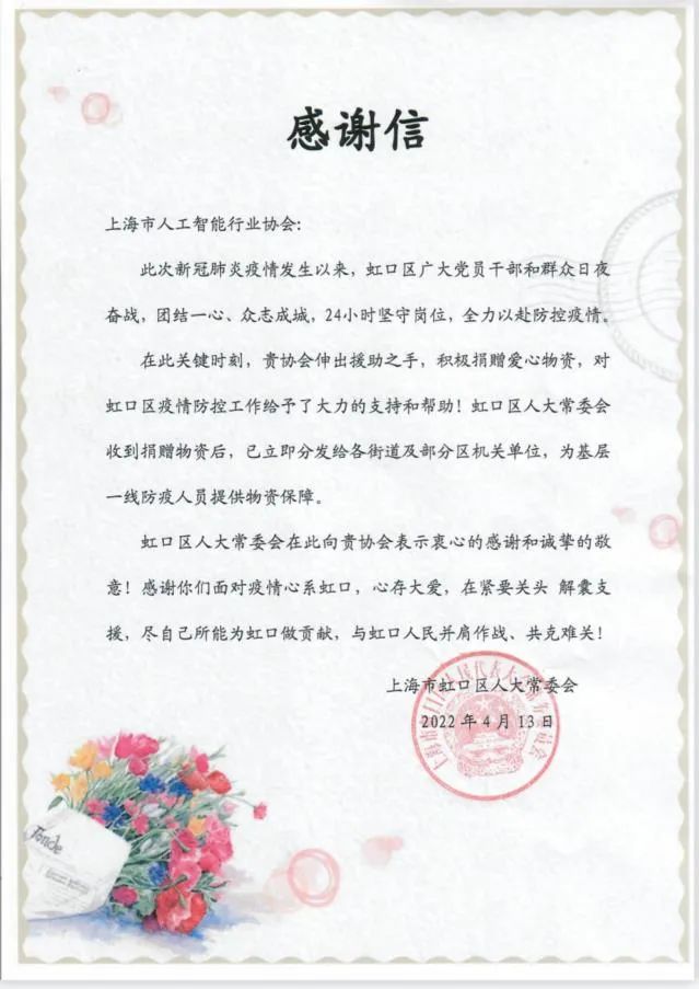 在全市進入靜態管理的艱難時期,物資缺乏,派送困難。協會第一時間了解到一些單位存在醫療物資短缺的情況,協會上下集思廣益,多方聯動,對接購買渠道和派送車輛,最終采購了一批抗疫醫療物資, 分別送往浦東紅十字會、上海市救助管理站、石泉路街道、虹口人大,為這些單位的抗疫解決了燃眉之急。上海市虹口區人大常委會發來感謝信使我們增強了信心,鼓舞了士氣,我們將繼續竭盡所能和上海人民并肩作戰,共克時艱,為上海早日實現社會面清零、復工復產做出應有的貢獻。