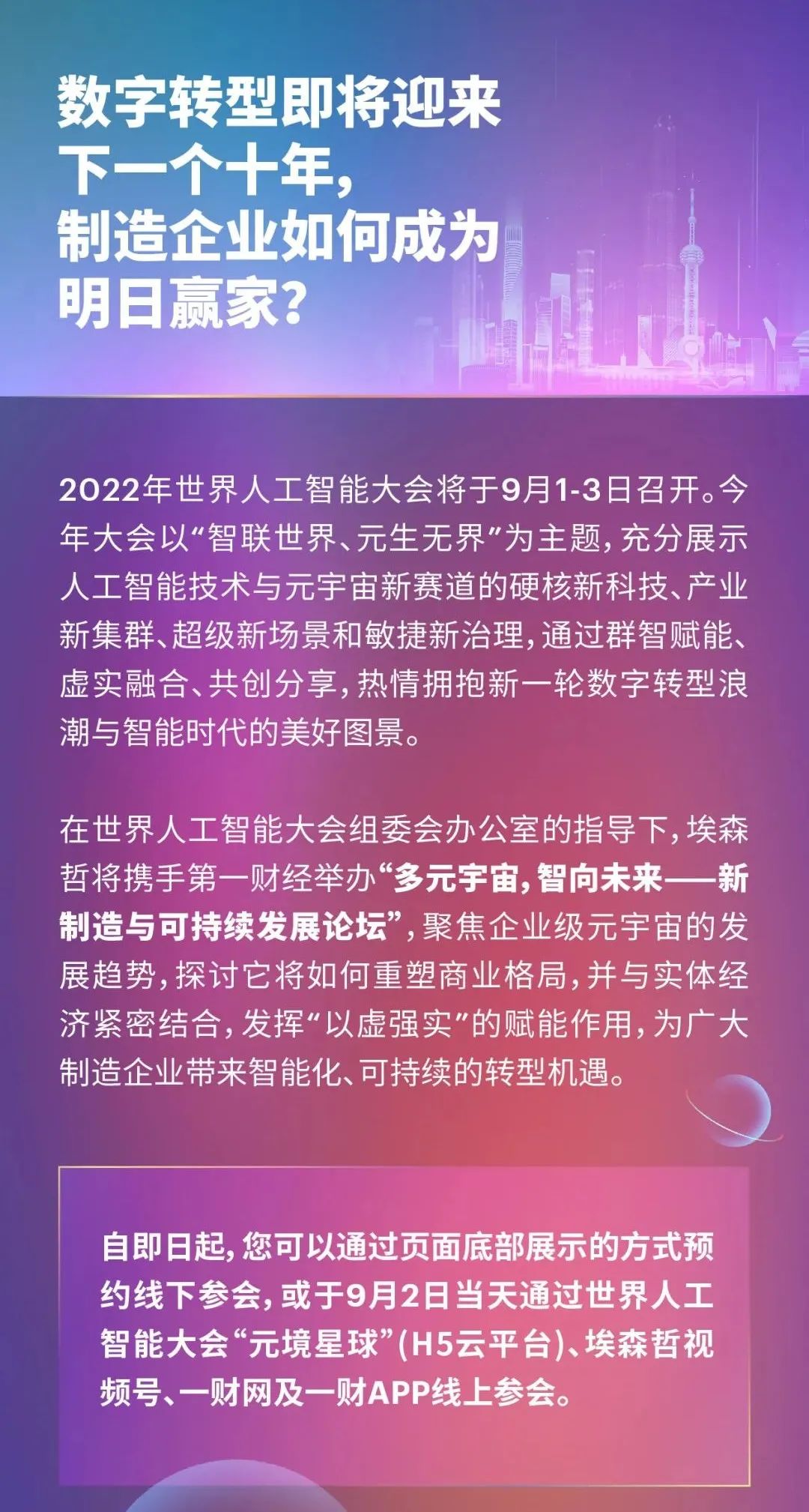 論壇名稱:WAIC 2022“多元宇宙、智向未來”——新制造與可持續發展論壇